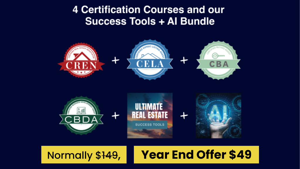 Focusing on different approaches to negotiating, the psychology of buying, and principles of persuasion, this course will teach you. Elevate your real estate business as a Certified Expert Listing Agent to hone your ability to communicate and present your value with unwavering confidence, gain the trust of sellers, and experience exponential business growth. Finally, a course that directly enhances your value to answer the NAR/DOJ Settlement. Become a high-impact agent with the expertise needed to excel through strategic business development and predictable lead generation techniques. The bundle that will help you operate your business. AI training that can transform your prospecting.